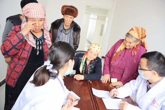拜城当地百姓对温州医疗队的水平非常信任,当我们赴克孜尔乡卫生院义诊时,给当地百姓送医送药,受到当地维族百姓的热烈欢迎。