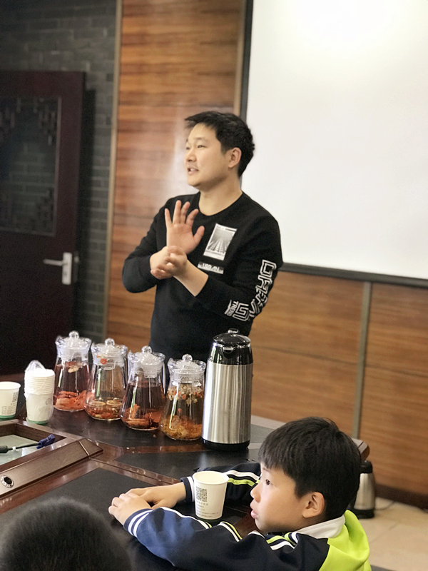 参观完中医药文化博物馆,神经内科黎斌主治医师给同学们介绍了养生穴道的小知识,工作人员还为同学们准备了中医院特制的四种花茶,并与同学们一起制作了兼具驱蚊和防病安神功效的中药香囊。
