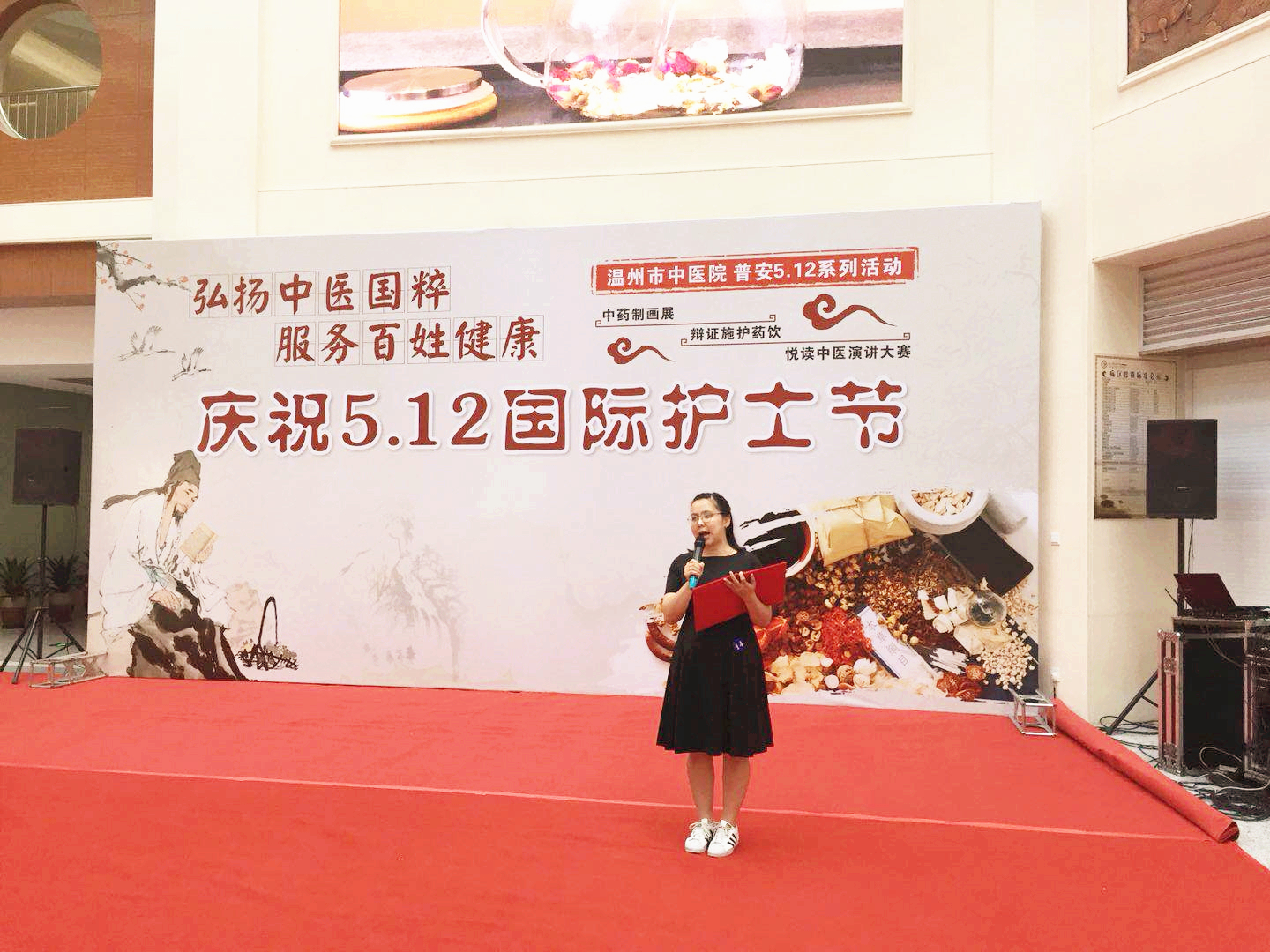 5月11日下午,我院举办普安月系列活动之“弘扬中医国粹,服务百姓健康”的主题活动,活动内容丰富多彩,其中悦读中医演讲大赛得到了各护理单元的踊跃参与。我院王庆来院长、施仲义副院长、麻瑞龙副院长、朱文宗副院长、赵永强副院长、缪心军副院长、曹文瑛总会计师、工会委员金瑞芬主任、中药房朱雪梅主任、孙乐(都市报记者)担任演讲大赛评委。