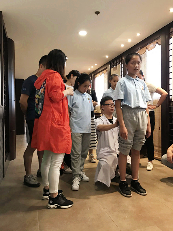 参观完中医药文化博物馆,陈添伟主治医师给同学们上了一堂中医养生课:普通的手指里也暗藏玄机。在大拇指上打圈100下,可治肚子痛、喉咙痛、扁桃体发炎;从下往上推食指100下,无名指向外推百次,可减轻咳嗽、流涕症状,还能长高。