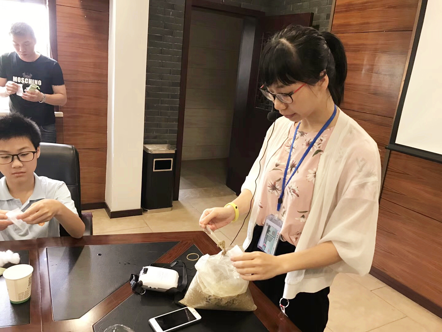 工作人员为同学们准备了中医院特制的花茶,并与同学们一起制作了兼具驱蚊和防病安神功效的中药香囊。