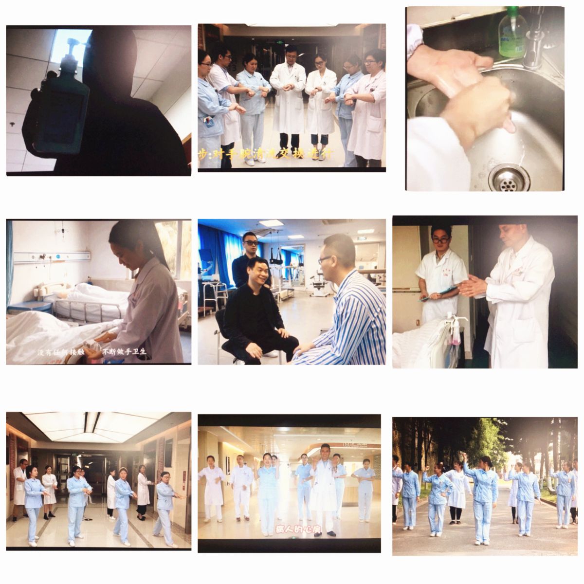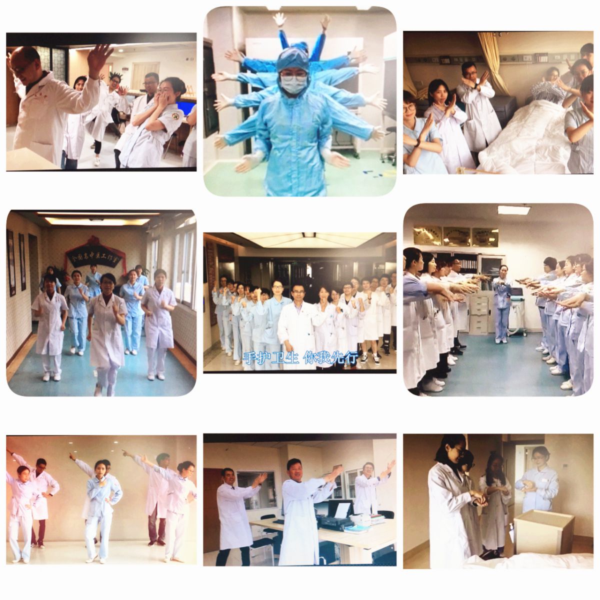 中医妇科的孙云主任带领大家热舞,起劲的舞姿很有感染力。手术室的《律动的旋律》中的医护人员统一穿着蓝色的手术衣,高大上的地球背景,剪辑完美。呼吸科选送的《快乐洗手》由科室独创改编歌词,“白衣天使降临在病人身旁,带去健康和希望,让我们勤洗手,是抵御病菌的秘方,要向全世界宣告,健康绽放......”呼应活动主题。消化科视频中诙谐的开端,张宣义主任夸张的反面表演,让人忍俊不禁。骨科2不善于舞蹈的吕存贤主任也积极带领科室人员完成了精彩的表演。神经内科1 胡万华主任的开场白让人感受到科室人员的感控决心。“从前有家医院,医院里有个科室,科室里有个医生......”急诊ICU与重症监护室视频作品中的“黑细菌”形象“瘆”入人心。检验科三大主任的尴舞“惊艳全场”。章国伟主任的大佬“金盆洗手”令人印象深刻。