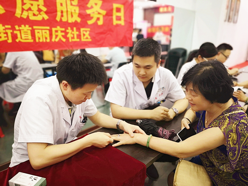 支部书记徐雄新向前来参加义诊的社区居民发放健康宣传手册和防蚊香囊,帮助大家纠正日常生活中经常遇到的健康误区。活动现场,社区居民热情参与,短短两个小时,几十位小区居民前来测量血压、血糖,咨询问诊。他们纷纷表示,通过此次义诊活动,对规律监测血压、血糖,定期体检的必要性有了更深的认识。与其他义诊不同,参与此次活动的综合支部的党员们都是刚工作不久的年轻人,徐雄新书记说:“年轻党员多是我们支部的主要特点,通过志愿者活动,让支部的年轻医护人员用专业知识方便、快捷地服务社区居民,将志愿者们的爱心、温暖带给大家,同时通过进社区服务,让大家感受肩负的责任,能够主动了解居民的需求,更有动力去学习专业知识,更好地为群众健康服务,是非常有意义的。”