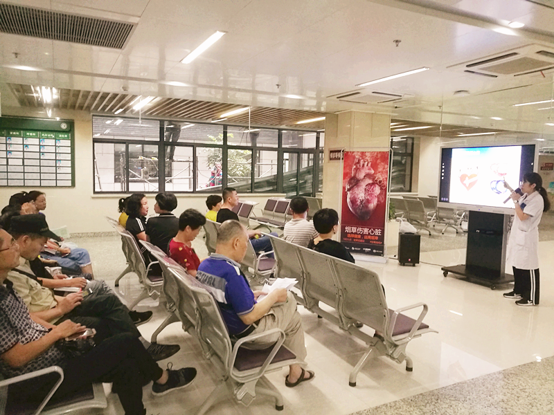 为向门诊病人宣传吸烟对心脏的危害,我院预防保健科特邀心血管内科蒋芙苓医生在门诊2楼开展健康讲座。蒋医生以直观的数据向听众展示了我国吸烟者及被动吸烟者人数之众,她表示吸烟与被动吸烟均会缩短寿命,烟是开启死亡之门的钥匙,吸烟是一种燃烧自己,毒害他人的损人不利己的行为。吸烟可导致多种疾病,包括多种癌症、呼吸系统及心脑血管疾病等。同时,她指出不存在无害的烟草产品,而降低吸烟危害的唯一方法只有戒烟,讲座最后,她还向听众分享了科学的戒烟方法。蒋医生的连珠妙语令听众沉浸其中,不少患者纷纷表示将积极戒烟,保障自己与家人的健康。