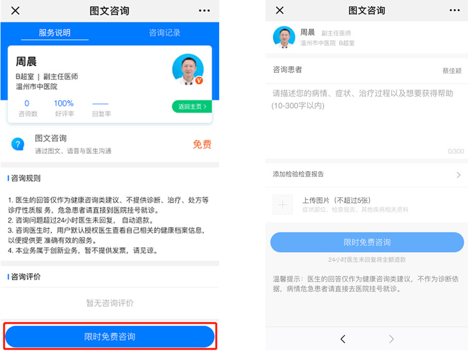 1、如果医生太忙,未能及时回复,将在发起咨询的24小时后退款;