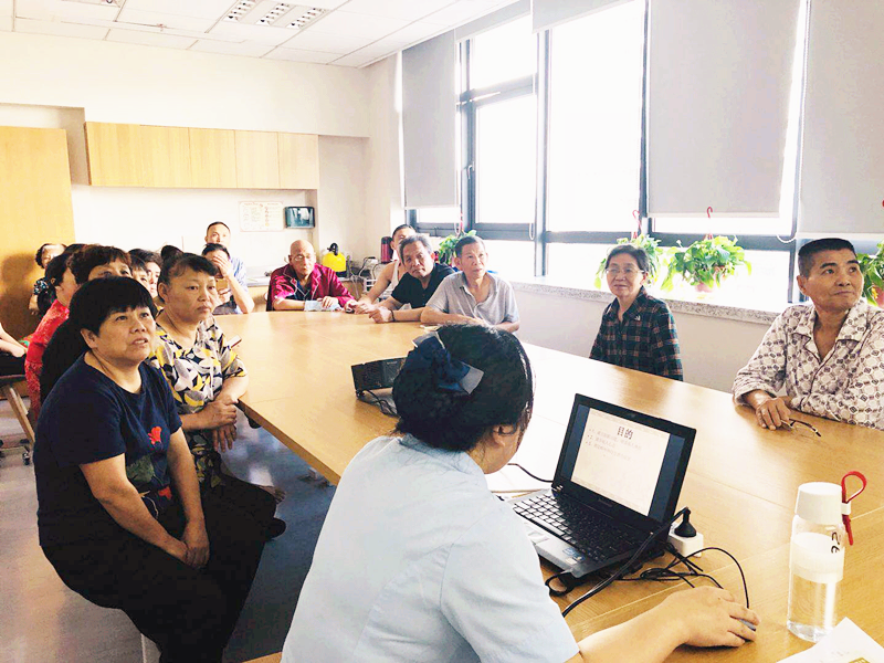 肝病患者的病情反反复复,病程一般长达几十年之久,饱受病情的折磨和沉重的经济负担,甚至某些病情如肝性脑病的病情发作时,患者还会烦躁不安,辱骂殴打家里人,因此,肝病患者的家属往往会承受着巨大的压力。为让患者家属更加了解肝病知识,免费体验中医操作,凸显我院中医护理特色,更好地服务患者和家属,2018年7月13日下午,我院感染肝病2的医护人员在综合楼9楼示教室举行了“把爱带回家”中医特色主题活动。
