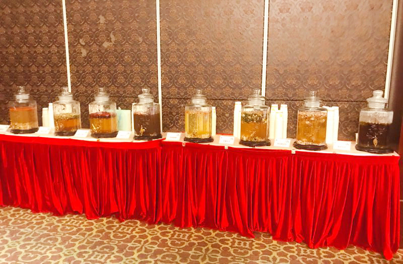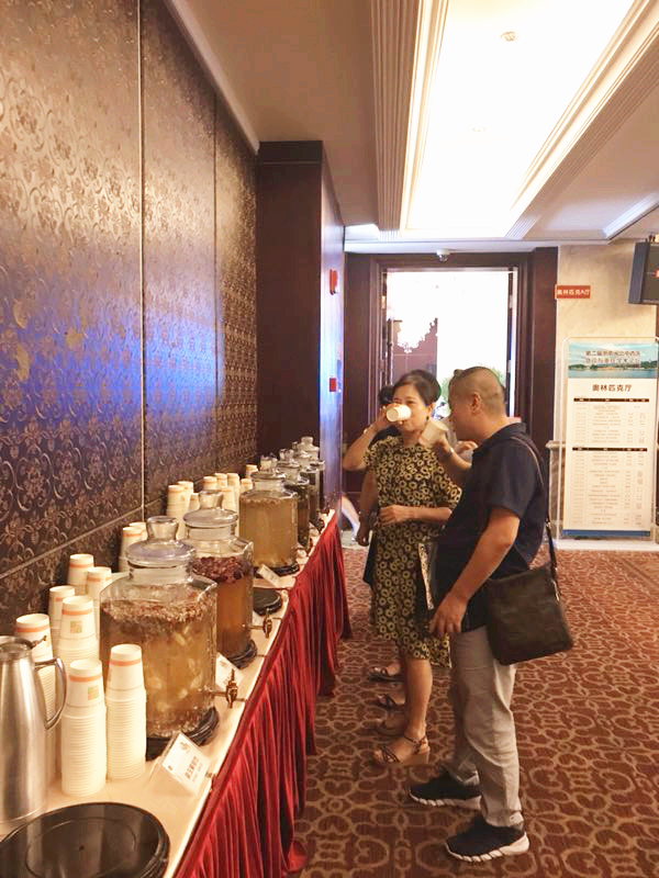 7月27日上午,现场还举行了2018年温州市急诊超声技能竞赛,来自全市20余名医务人员同台竞技,我院黄定靠医师在激烈竞争中拔得头筹。另外,在会务接待区,我院特地为参会者提供了医院自制的中药特色养生保健茶饮,让大家休憩时感受中医药文化魅力。
