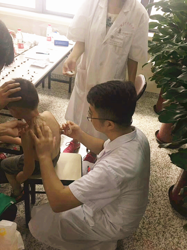 “三伏贴”药性温和,适合儿童贴敷。现场便可看到许多家长领着小朋友来进行贴敷。因为儿童不适合拔罐,因此只需在相应的穴位进行贴敷即可。小儿常见的如支气管哮喘、过敏性鼻炎、咳嗽、反复呼吸道感染,经过贴敷治疗,效果大多非常显著。