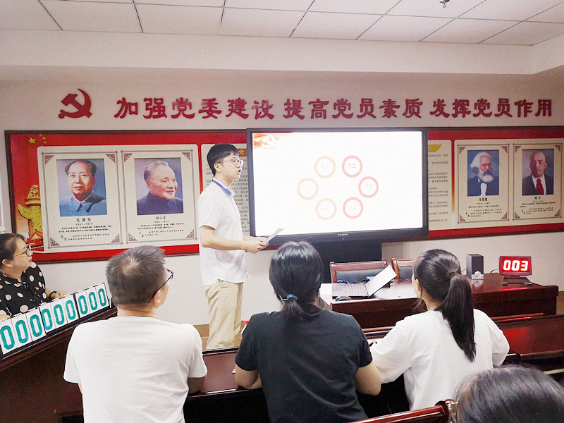 为深入贯彻党的十九大精神,2018年7月30日晚上,在我院综合楼505党员活动室,医技党支部组织全体党员开展了“弘扬红船精神,争当时代先锋”主题党日活动,会议由支部书记夏平易主持。