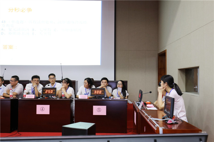 经过一番激烈的角逐,医院组香蕉视频 代表队、温州市中西医结合代表队,社区组瑞安市社区代表队、鹿城区社区代表队,企业组温州延生堂控股集团代表队、温州叶同仁综合门诊部代表队杀入了总决赛。总决赛于当晚6点开始,各位评委专家仍精神抖擞,严格对台上对手的简答题回答做出评分及判断。第一轮我院以230分优势与温州市中西医结合医院齐头并进。紧接第二轮抢答环节,各位选手蓄力待发,我院三位选手渊思寂虑、分工明确、相辅相成,于大屏幕闪过题目的片刻,即可做出反应。队员朱晶晶各种以迅雷不及掩耳之势顺利抢答,获得了多项题目答题权,在拼杀过60道抢答题之后,我院以唯一超过300分的优势遥遥领先!最后一轮,奋力拼搏。我院代表队在领队提出的策略下,稳中求进,选择相对保守的分值题,正如《孙子·军争》所言:“其疾如风,其徐如林,侵掠如火,不动如山”!