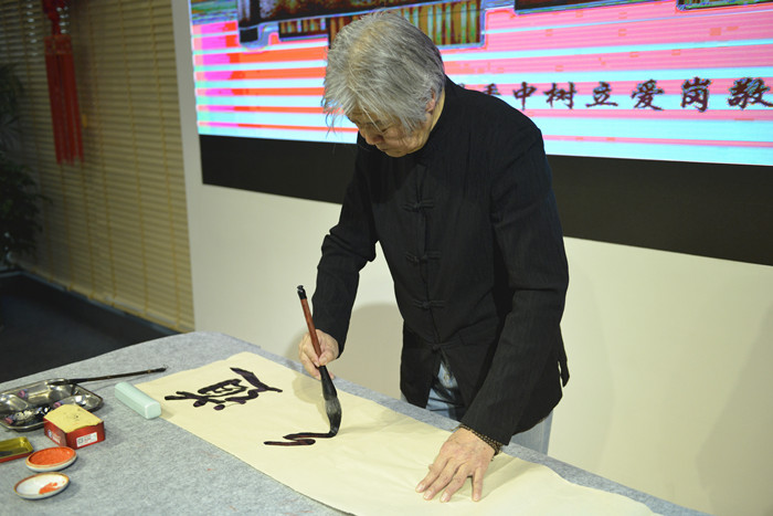 随后,香蕉视频 之歌在四位医院同仁的带领下唱响全场。门诊部护士长戴清辉带领全场学习了礼节。活动更是邀请到温州著名书法艺术家谢慈恩老师现场泼墨,书写“道德讲堂”。