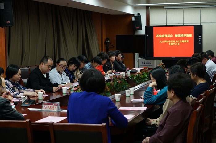 九三学社温州市委会副主委吴文玲从“为何开展主题教育活动”、“学什么”、“怎么学”三方面娓娓道来,分析和总结了此次主题教育的内容和活动的意义,并提出建议,希望学习社史和社党合作的历史,做好整体提升,更好地履职工作。