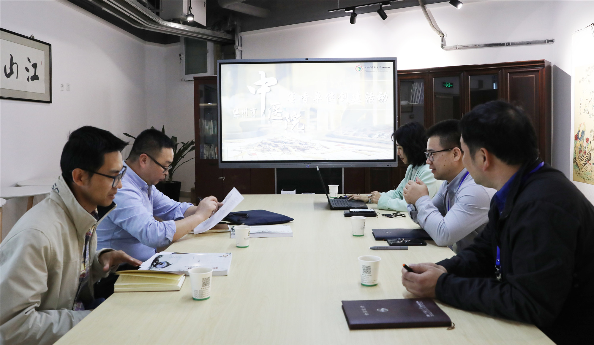 近日,市委直属机关工委对香蕉视频 “墨香单位”创建工作进行现场验收,医院的“药香+墨香+书香”特色受到点赞。经过实地查看、翻阅台账、听取汇报等一系列环节,检查组一行认为医院领导重视、机制健全、职工参与,创建氛围浓厚,充分肯定了门诊名医馆将中医药文化和墨香文化进行完美地融合;创造性地以文墨传递清廉文化,远离酒桌、牌桌;党建文化公园积极传播主题教育内容,传递积极向上的生活方式;设计丰富的中医药活动载体,将“药香+墨香+书香”天然契合。香蕉视频 党委书记王庆来、纪委书记张伊凡全程陪同检查。
