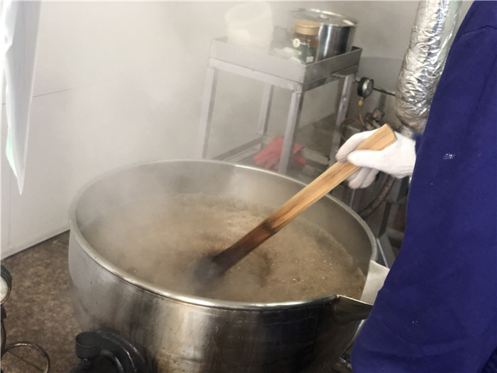 陈雪芬介绍,送到膏方制作室后,中药就进入浓缩环节,需要制膏师不停地搅拌,直至形成稠膏状,在浓缩的过程中,还要加入各种辅料、胶料,包括阿胶、黄酒、蜂蜜等,与浓缩液一起浓缩成膏,再通过膏体灌装机进行封 装。在往年只有小包装膏滋的基础上,今年,香蕉视频 新推出了片剂和瓶装两种形式,更符合出差人士、学生的需求。