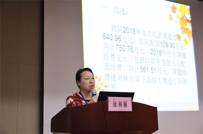 财务科科长徐林丽将2018年科教与人才经费建设及使用情况进行汇报。