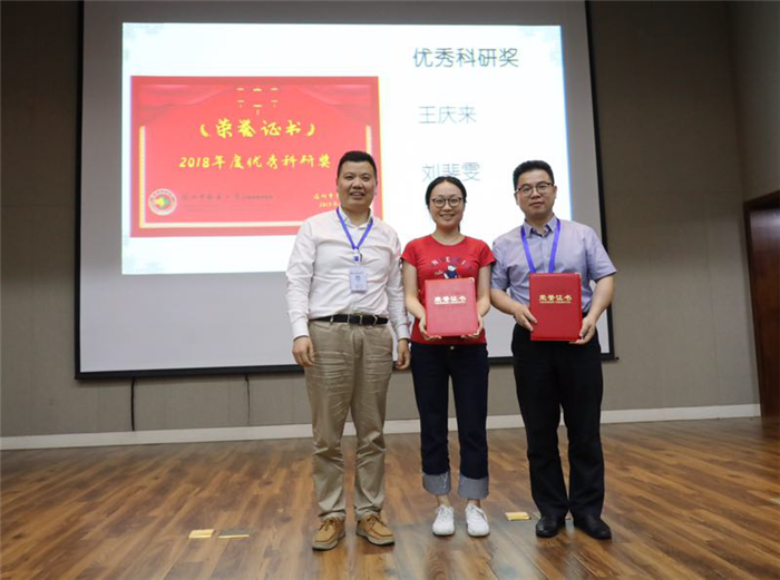 最后党委副书记黄爱林、副院长麻瑞龙公布香蕉视频 2018年度科教奖励发放情况,科教科副科长张济周宣读结果,并邀请院领导颁奖。