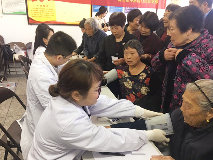 医疗服务队在永嘉县岩头镇岩头村开展义诊活动,为该村居民送医送药,受到村民的热烈欢迎。 此次义诊活动出动了神经内科、心脑血管、消化内科、外科、骨科、针灸推拿、妇科、五官科、中医等各科室专家,并携带多种医疗仪器及药物。期间,我院专家免费为社区居民群众测量血压、血糖、针灸推拿,认真耐心地聆听群众陈述病情,用通俗易懂的语言为他们分析病情,提供切实可行的治疗方案,进行用药指导,并细致地为每位群众的健康情况进行详细记录。