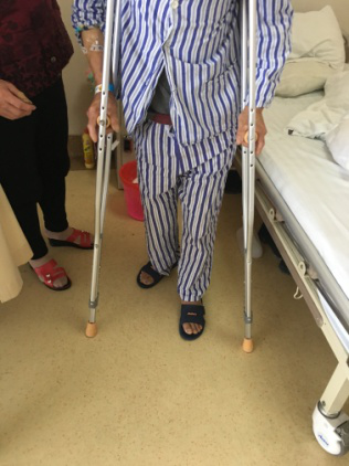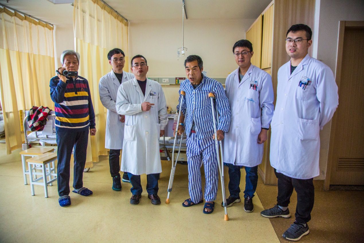 手术后第7天,吴大爷便能轻松持拐行走,比起手术后第1天进步很大。吴大爷对手术感到非常的满意,并且对医生护士的认真、负责倍感欣慰。每一次查房,吴大爷都难以掩饰心中的感激,感激吕存贤主任医生,以及病区全体医务工作者,感激他们辛勤的付出,因为30年来的“苦”终于结束了,2小时手术换来是今后的“乐”。