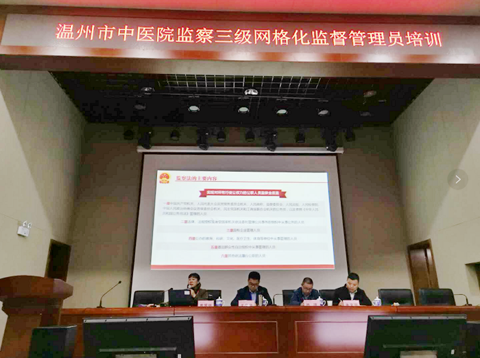 会上,院党委副书记、纪委书记黄爱林介绍了推进监察网格化监督的实施方案。作为温州市卫健委直属公立医院开展公权力人员网格化监督管理试点工作单位,我院在原有纪检监察室工作的基础上,在全院范围内专门聘任特邀监察员,组建一支敢监督、会监督、善监督的监察员队伍,基本形成以院纪委书记、纪检监察室、支部、支部相辖的科室特邀监察员为核心的三级网格化监督管理体系,实行“定格、定人、定责”的网格化监督模式,实现无死角、全方位、常态化监督,推进清廉医院的建设。随后,她向与会人员作监察法宣教,讲解了颁布监察法的重大意义及其指导思想,并对其中的重点内容进行解读。