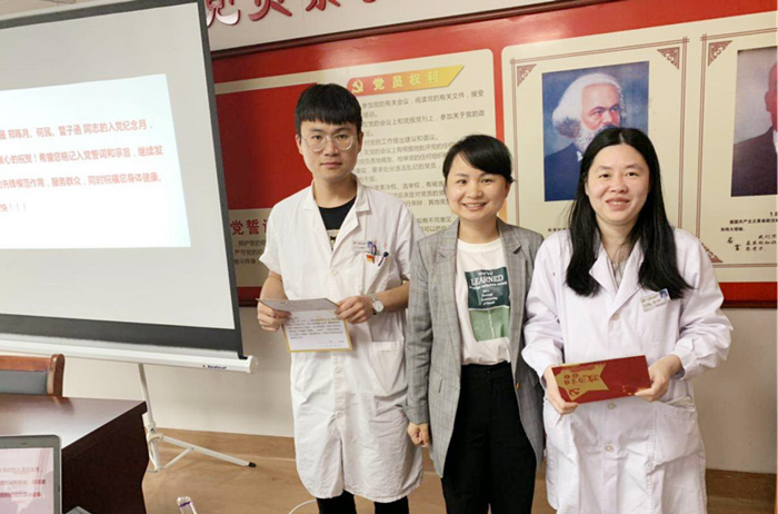 随后,赵娜书记介绍了内科党支部吸收的高知成员——胡万华,浙江省名中医、瓯越名医、温州市名中医,主任医师,兼职教授,国家重点学科中医专科带头人,心脑血管学科群带头人。号召各位党员积极向胡主任学习医风医德,发挥先锋模范作用。