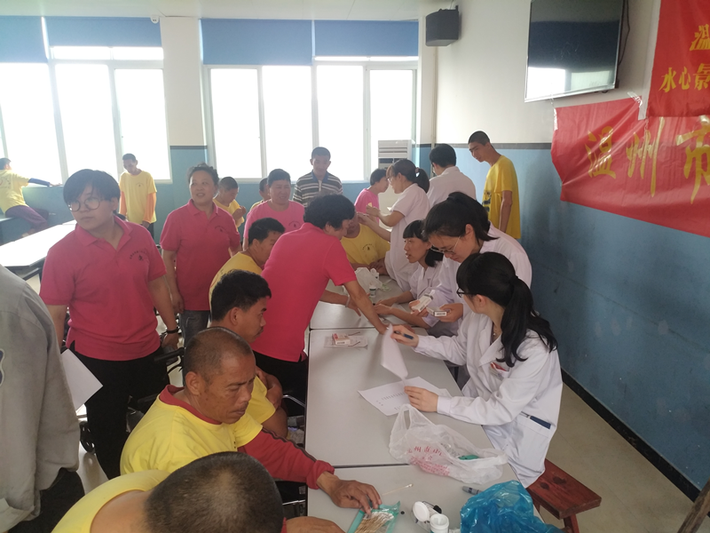水心景山党支部党员专家团队一行人,深入龙湾区残疾人托养中心结对帮扶,开展义诊健康咨询活动。