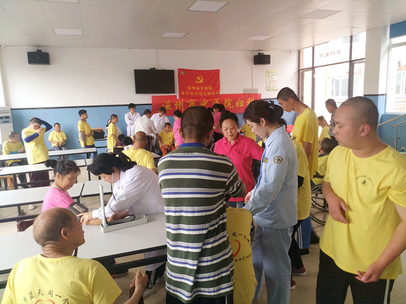 水心景山党支部与龙湾残联建立了长期结对帮扶关系,每月免费提供内科检查、康复评定、中医康复治疗日常生活能力训练等各项医疗救助。