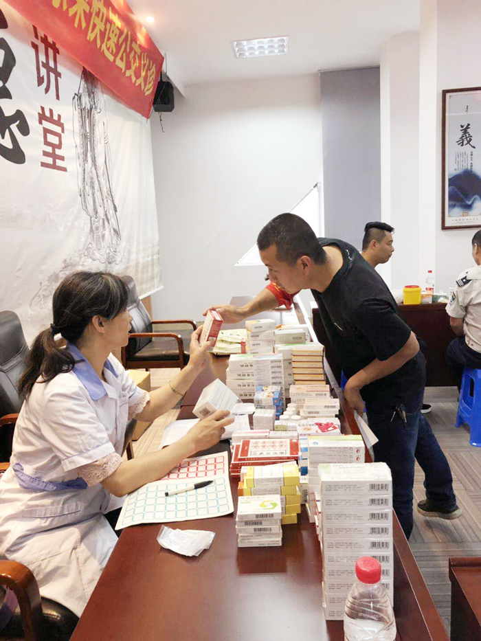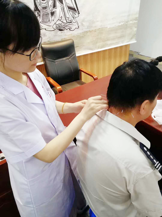 因职业关系,司机朋友们出现颈腰腿痛的症状比较多,骨科倪向明副主任医师、潘胜莲主治医师、吴登宠主治医师主要针对颈椎病、腰腿痛等疾病进行现场诊断治疗,给予药物、膏药治疗及康复指导。潘胜莲委员随身携带针灸用具,现场给与针灸以疏通经络,微针刀以松解筋膜,经过治疗后,司机们疼痛不适、活动受限等症状较前减轻,立竿见影的疗效让大家欢喜不已。
