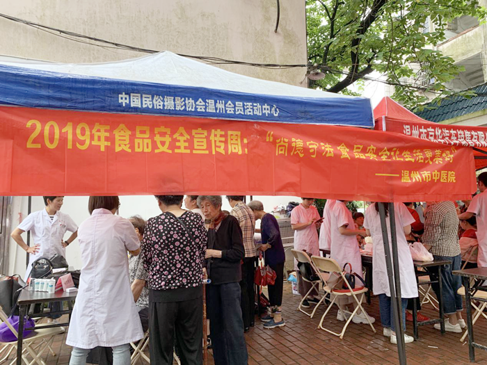 2019年温州市食品安全宣传周定于6月19日至7月3日,主题为“尚德守法 食品安全让生活更美好”。为向群众普及食品安全科学知识,6月25日上午,我院在水心樟公园开展健康义诊活动,为到场的市民免费测血压血糖、耳穴埋豆,并增设了冬病夏治项目,邀请针推科的医生现场施医施药。此外我科还安排专人发放宣传资料并向在场市民普及食源性疾病和食品安全知识,大力宣传预防食源性疾病要遵循的“食品安全五要点”。