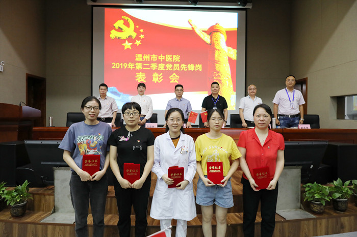 朱文宗院长宣读医院表彰第二季度“党员先锋岗”人员名单,院党委班子成员为受表彰的党员颁奖。