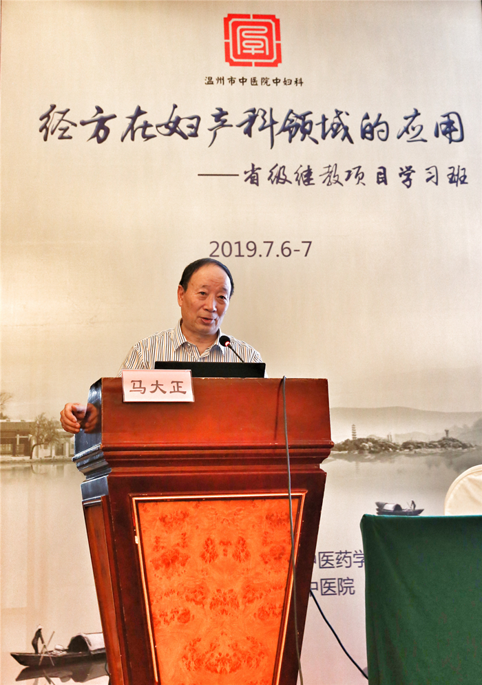 浙江省国医名师马大正主任医师致开幕词,对从广州佛山、宁波、三门、丽水等省内外远道而来的同仁们表示热烈欢迎及衷心感谢。马老分享了妇科领域经方应用的情结,自1982年师从浙江省名中医吴国栋主任医师在妇科领域应用经方经验,成为其学术继承人,此后致力于从事经方治疗妇科疾病的研究。先后发表经方类文章40余篇,在国家级、省级、市级继教会议以及德国、台湾等地进行妇科经方讲座30余场,出版《妇科经方证治心裁-206首仲景方剂新用广验集》,引领科室成员使用经方蔚然成风,创制特色鲜明、善用经方的浙南马氏妇科。从马老的分享中,与会人员充分领会到马老对经方的热爱以及致力于经方研究、传承的决心。