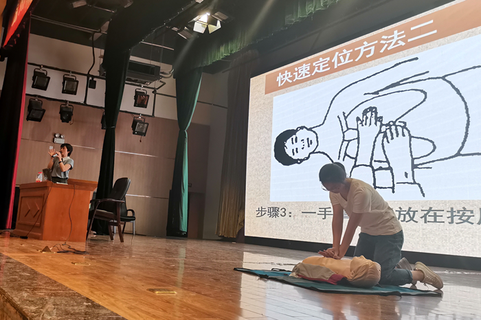 在讲解的过程中,胡娇娇医师为同学们演示了心肺复苏的操作要领。