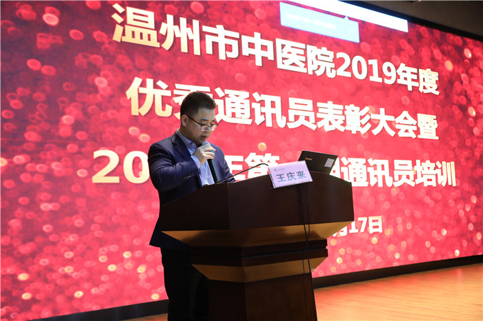 为加强医院宣传队伍建设,提升通讯员的凝聚力与向心力,1月17日下午,香蕉视频 召开2019年度优秀通讯员表彰大会暨2020年第一期通讯员培训会议,党委书记王庆来、纪委书记张伊凡及各科通讯员参加本次会议,宣传统战科副科长姚奇志主持。