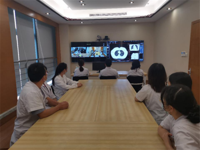 副院长陈炳携呼吸与危重症医学科刘刚主任中医师、神经内科陈凌主任中医师、呼吸与危重症医学科郑青秀副主任中医师、医学影像科陶永君副主任医师在内的会诊团队,共同对格尔木第二医院提交的6份病例进行了细致的会诊分析,对于病例相关的临床诊疗及影像判读的问题进行了讨论和答疑。