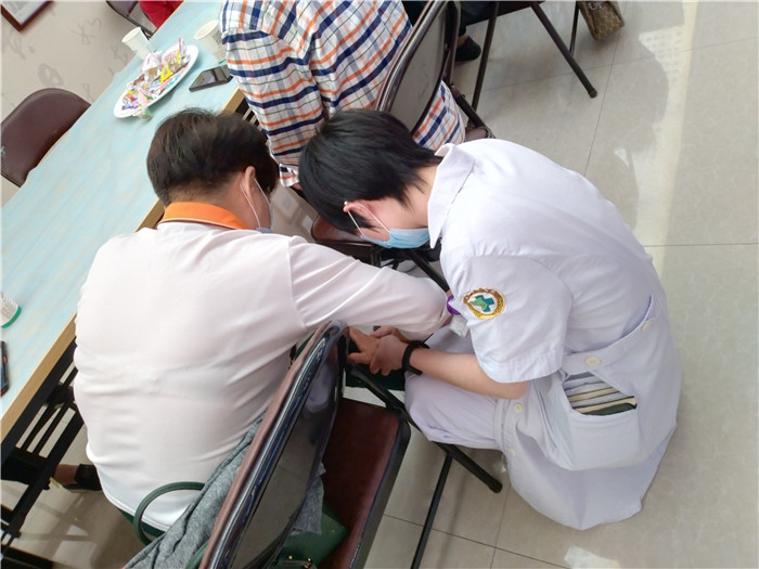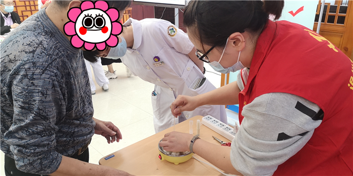首先开展的是健康知识教学。针灸科主治中医师瞿一新为大家上了一堂“小穴位,大作用”,让众人体会酸、麻、痛的感觉。