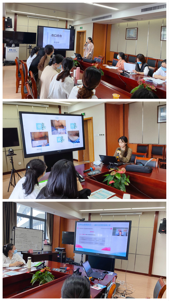 会议内容十分丰富,不仅有肝病科护士、伤口造口师陈益琦专业的《压伤愈合生理学》主题授课,还有外科护士朱婧针对一例临床失禁性皮炎运用3M皮肤保护剂及艾灸后快速愈合的案例心得分享,而会议“彩蛋”则是南京大学医学院附属鼓楼医院造口治疗师吴玲通过视频形式开展的《2019国际压疮指南解读》分享。