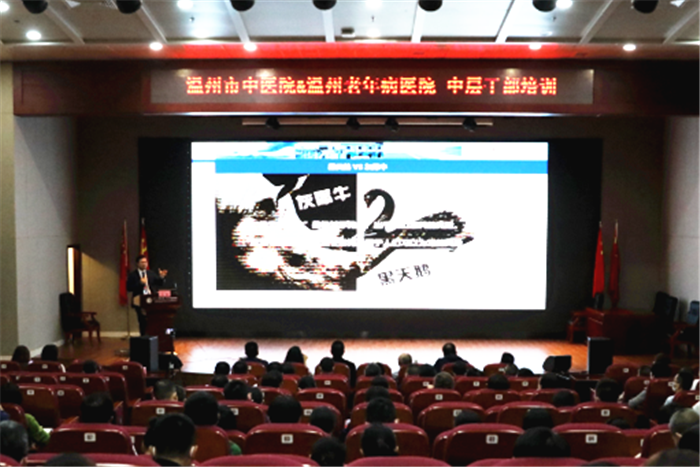 11月26日下午,香蕉视频 于综合楼八楼举行2020年中层干部培训,领导班子及中层干部、中医医疗集团单位代表、温州老年病医院中层干部共计200余人参加培训。