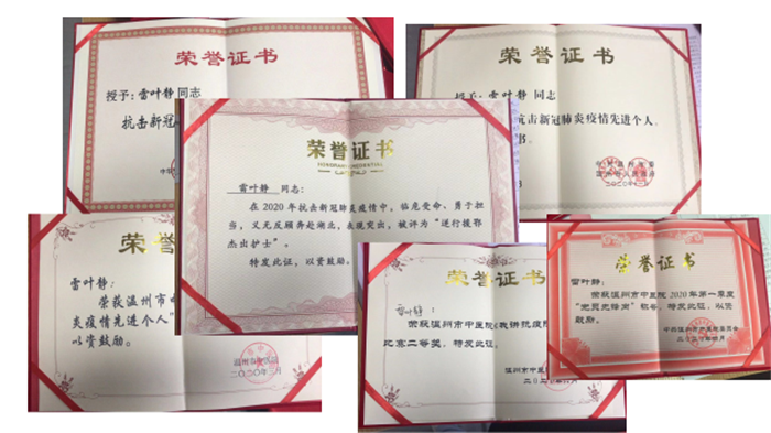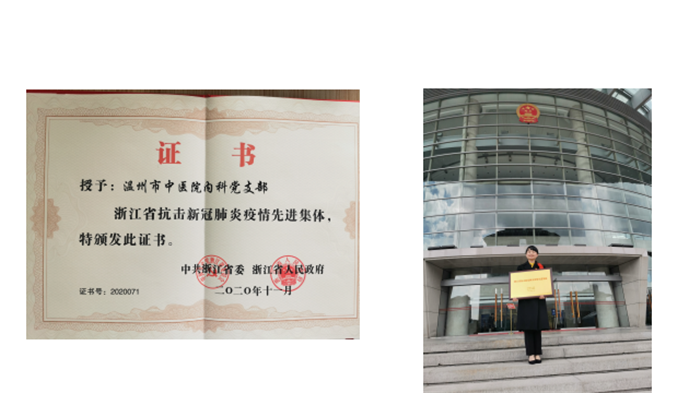 赵娜还对2020年内科支部的工作做了总结,各位党员不忘初心、牢记使命,全心全意为人民服务,时刻冲锋在前,为了疫情防控,将个人的生死和安危置之度外,用自己的实际行动诠释了医护人员的奉献精神。雷叶静同志荣获2020年全国“三八红旗手”称号、浙江省逆行援鄂杰出护士、温州市“新冠肺炎疫情防控一线工作”先进个人、温州市疫情防控及企业复工复产“最美职工”、香蕉视频 “防控新冠肺炎疫情先进个人”、“逆行援鄂杰出护士”等称号。陈瑞霞同志荣获“援鄂抗疫优秀护士”、温州市疫情防控及企业复工复产“最美职工”、香蕉视频 “防控新冠肺炎疫情先进个人”等称号,还在医院《我讲抗疫防控护士》比赛二等奖。同时,支部党员缪心军、朱小区、李献超、雷叶静、陈念昭等获得2020年香蕉视频 防控新冠肺炎疫情先进个人;金红露、潘锟镭、卢翔三位同志获得党员承诺践诺活动“闪光言行之星”;雷叶静、李献超、陈克龙还分别被评为第一、二、三季度党员先锋岗;支部书记赵娜荣获市卫健委颁发的2019年优秀党支部书记称号。也是因为各位党员的不懈努力,忘我工作,内科支部被评为2020年温州市疫情防控事迹突出的党组织,获2019年院级五星党支部。