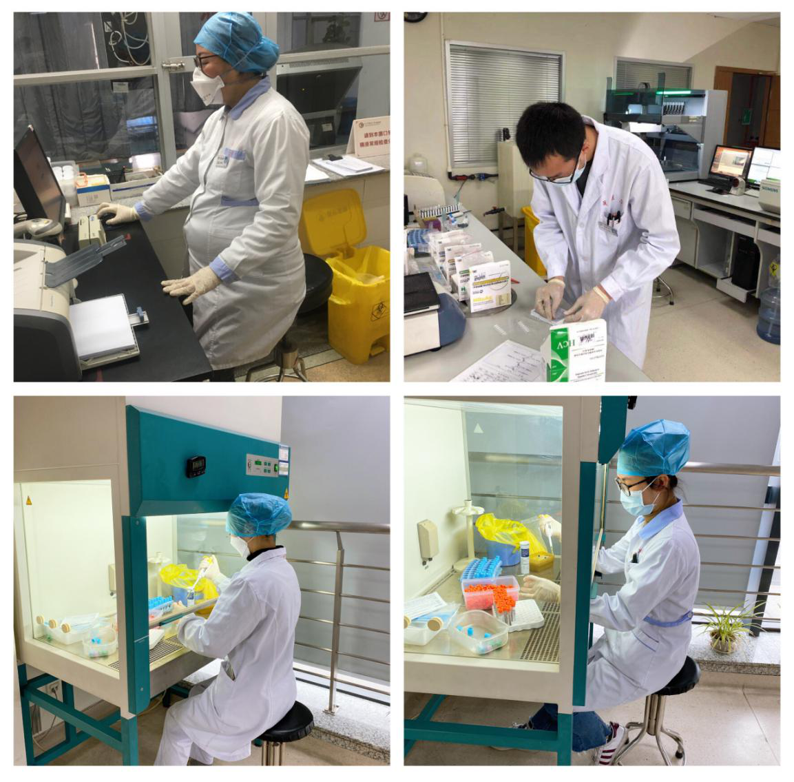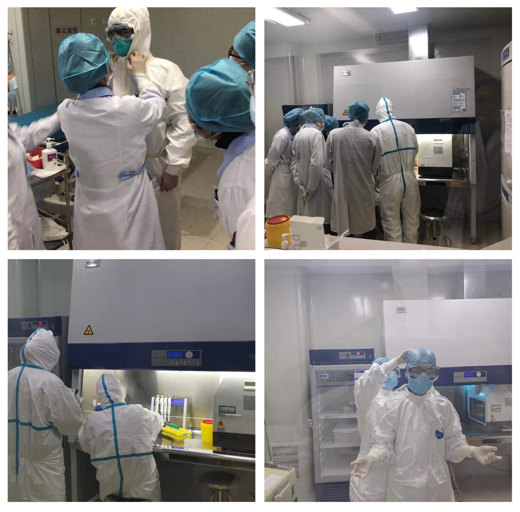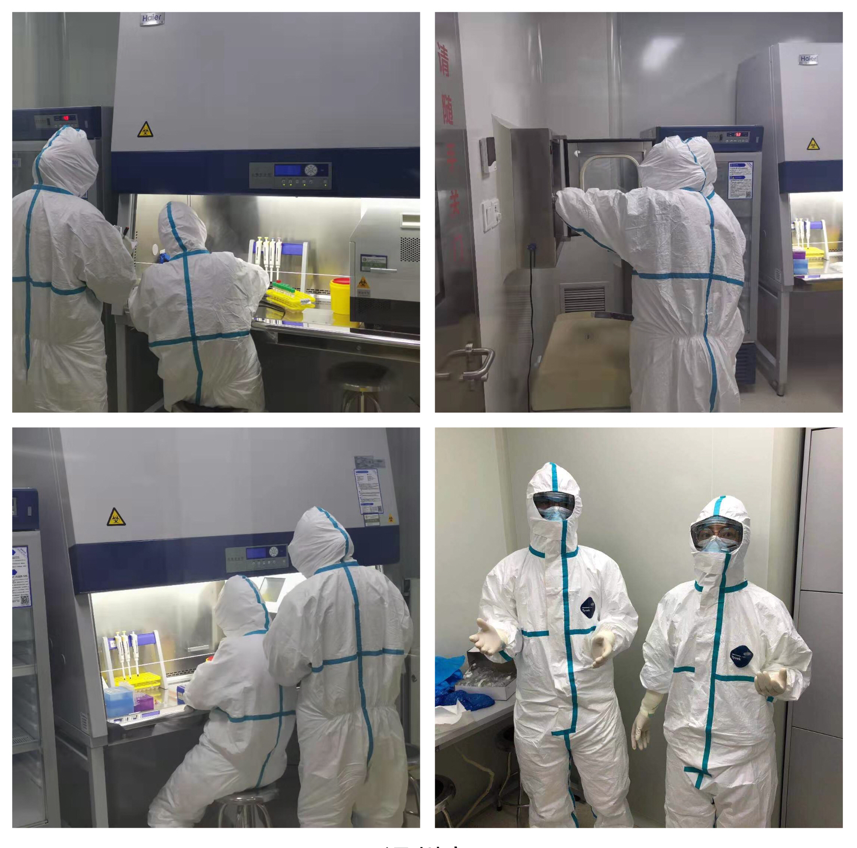 科室里的党员同志们身先士卒,负责检测工作的六名人员中有五位党员,他们不惧风险,身着“重”装,全力以赴,义无反顾地担负起新冠病毒检测的重要任务!