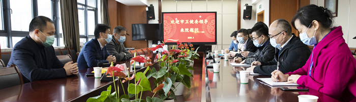 3月13日,市卫健委党委委员、纪检监察组组长潘建国一行来我院向坚守在抗击疫情的医务工作者表示敬意与感谢。党委书记王庆来,院长朱文宗,副院长麻瑞龙、缪心军,纪委书记张伊凡和各职能科室以及在疫情防控一线的医务工作者代表一同出席。