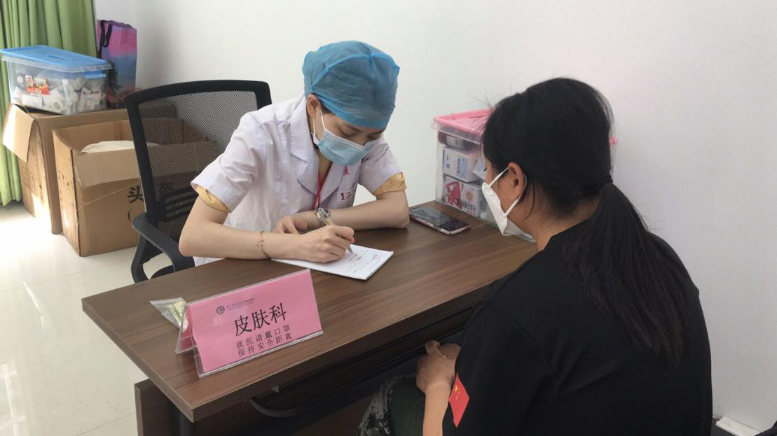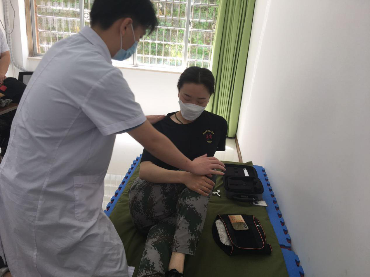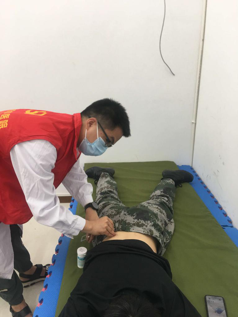 民兵训练十分艰苦,容易导致运动损伤及心理创伤,且夏日炎炎极易晒伤皮肤,因此此次义诊活动,门诊党支部特联合针推理疗科、康复科、皮肤科提供精准的服务,开展了针灸、康复等中医特色治疗,不仅免费送出常用药物,还开展了生动的心理讲座,得到了大家的一致好评。