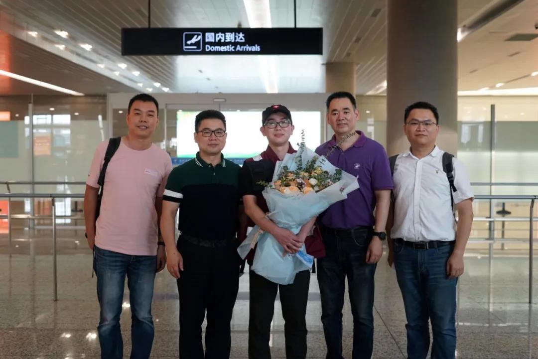 7月11日下午,驰援北京20天的香蕉视频 检验科张钧武和其他7名温州援京医疗队队员圆满完成核酸检测任务,顺利飞抵龙湾国际机场。温州市卫健委党委副书记、副主任徐斌,香蕉视频 党委书记王庆来等一行人在机场迎接英雄凯旋。