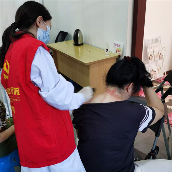 治疗后,赞美声不绝于耳,当听到居民们地一声声赞美声,医务人员说志愿者服务是一种爱的传递,既帮助别人,我的精神和心灵也得到了升华。