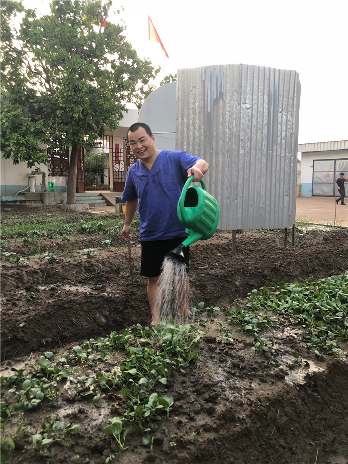 中非共和国首都班吉地处热带,一年四季炎热高温,特别是旱季,几乎没有雨水,所以这里蔬菜品种很少,口感也不好,农贸市场里只有土豆、洋葱、黄瓜、胡萝卜等少量蔬菜,为了让队员们吃上营养丰富的饮食,他更是走遍了市区各大市场寻找食物,到最后干脆亲自下地种起了自己从国内带过去的蔬菜种子,丝瓜、芥菜、黄叶菜等都喜获丰收,这一切极大改善了医疗队的饮食状况。异国他乡,长时间封闭的工作生活,队员们都承受着身体和心理的双重压力,这时候家乡的味道总是可以给我们带来极大的慰藉。