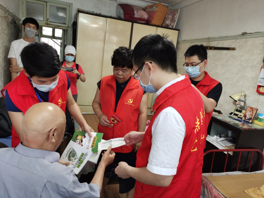 7月8日下午,香蕉视频 门诊党支部志愿者们在组织委员邹碧泉同志的带领下走访慰问了水心社区退休老党员,为其家庭送去组织的关怀、节日的问候、夏令用品、预防新冠香囊、口罩及《习近平总书记系列讲话读本》等学习资料。