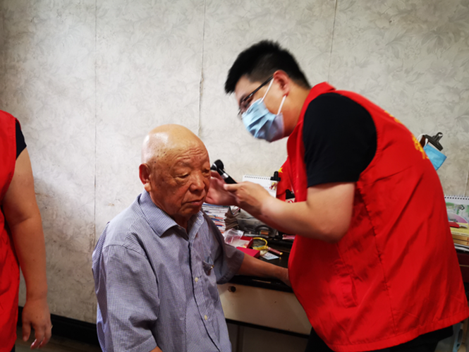 随后一行人来到老党员邱芬芬家,针对她的身体状况,耳鼻喉科医生尤孙文详细检查她的耳鼻情况,提出保健方案,她很感动,党没有忘记他们。邱芬芬同志曾荣获省党代会代表、市劳模、市人大代表等荣誉,支部委员和医生们与她促膝谈心,听了她的故事,志愿者们都表示要努力向老党员学习,做一名与时俱进的优秀共产党员。