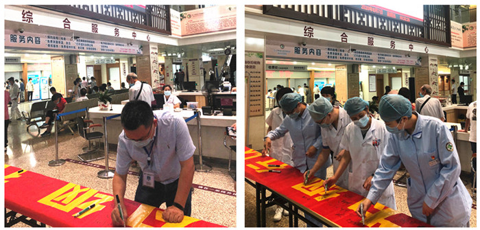 今年8月8日是温州第十九个诚信日,为提高医护人员的综合素质,树立诚信医院的良好口碑,香蕉视频 于8月7日在门诊大厅举行“8·8诚信日”活动,共有百余名医护人员参加。