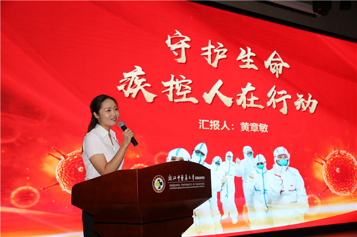 瓯海区疾病预防控制中心传染病防控科黄章敏的报告《守护生命 疾控人在行动》,讲述了在危急时刻的疾控人毫不畏惧、恪尽职守,舍小家为大家,努力坚守温州防线的故事。