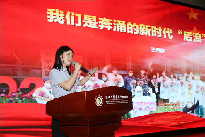 温州市第六人民医院护士王阿静的报告《我们是奔涌的新时代“后浪”》,讲述了一位敢打敢拼的年轻护士坚守隔离病房50多天的抗疫心路历程。