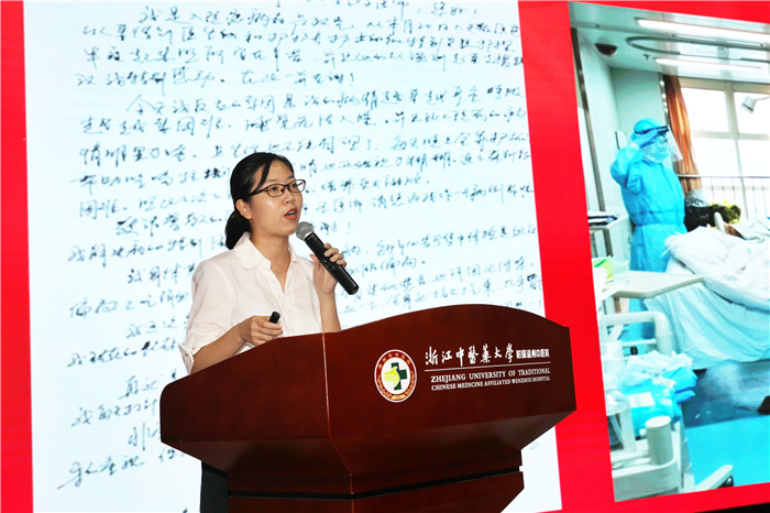温州医科大学附属第一医院护士卫庆的报告《重症隔离病房的泪光》,讲述了奋战在抗疫一线的医务工作者们义无反顾冲锋在前,同时间赛跑、与病魔较量的故事。