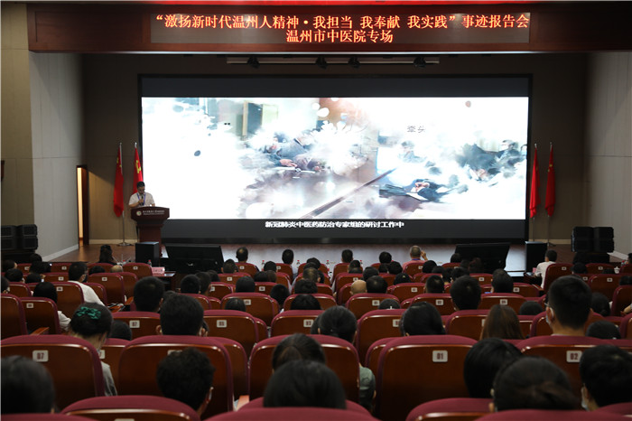 最是精神有力量!8月21日下午,“激扬新时代温州人精神?我担当 我奉献 我实践”事迹报告会香蕉视频 专场在六虹桥院区报告厅举行,报告团成员以小故事讲述大背景,一起回顾了他们为健康而战、为荣誉而战、为未来而战的“奋战奋进”之姿,以榜样的力量诠释着新时代温州人的精神。